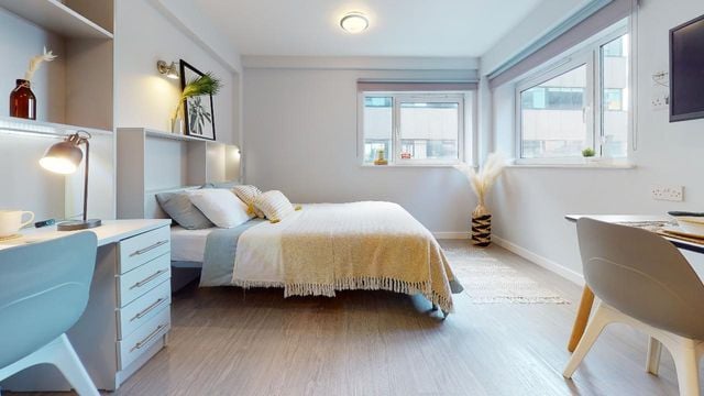 Student accommodation is typically fully furnished. Your room should include at least a bed, clothes storage, desk and chair. You’ll likely need to bring things such as bedding and kitchen utensils, but we have a full list here of everything you’ll need.