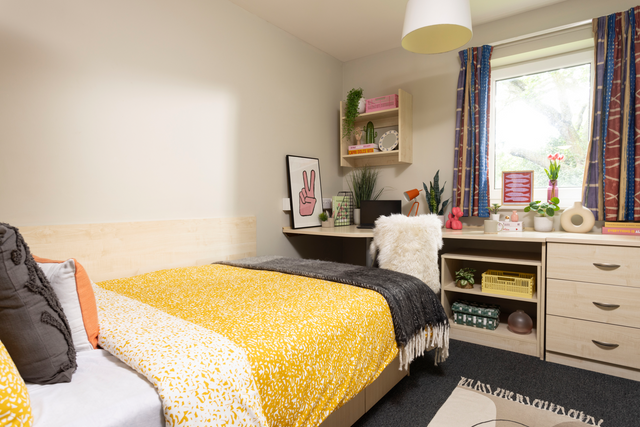 Student accommodation is typically fully furnished. Your room should include at least a bed, clothes storage, desk and chair. You’ll likely need to bring things such as bedding and kitchen utensils, but we have a full list here of everything you’ll need.
